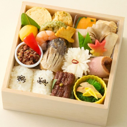 清潔感のある折箱に季節料理と京料理を少しずつ詰合せました。かます柚庵焼き、菊花大根酢漬けなど旬の食材を彩りよく盛り付けるのは熟練の調理師ならではの手仕事です。ご飯が控えめですので様々なお料理を楽しみたい方におすすめです。